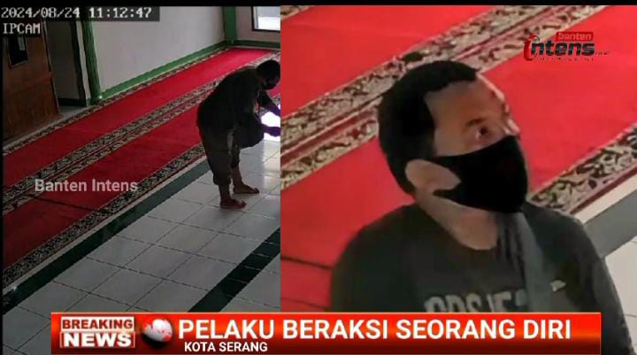 Pemuda ini mencuri kotak amal mesjid Nurul Amin Kp. Karang Antu Pelabuhan, Serang, Banten Aksi Pelaku Bobol Kotak Amal Masjid Terekam Jelas Kamera CCTV, minggu (25/08).